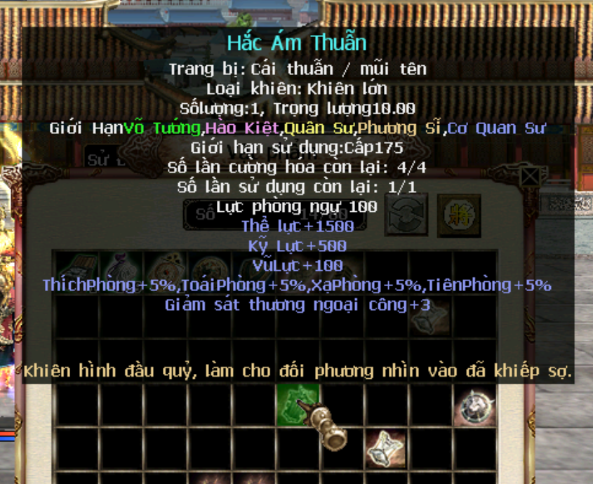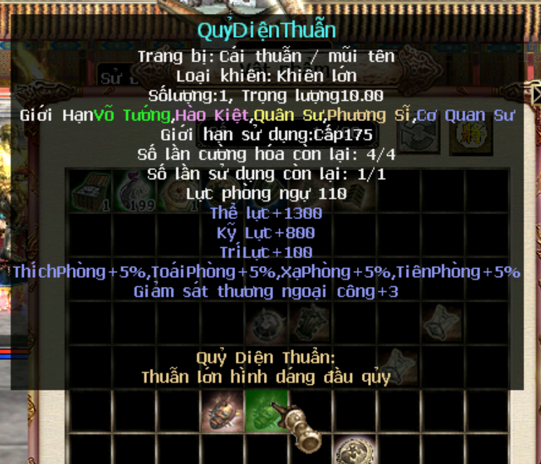 Khiên sẽ có số lần cường hoá 4/4 hoặc 5 lỗ, nhận được khi mở Túi Thần Thuẫn