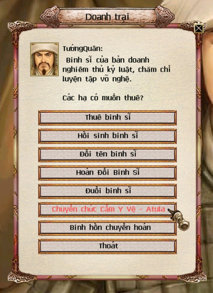 - Yêu cầu 2 lính Cẩm Y Vệ cấp độ 199 + Chức lệnh Atula để chuyển chức