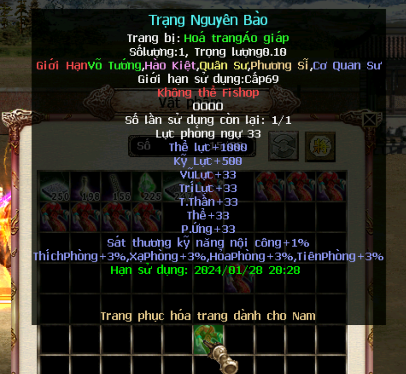 Để giải quyết vấn đề dư thừa Hộp Bảo Thạch cấp 1, cũng như tăng sức mạnh cho các bác 1 cách khá là miễn phí thì trong bản cập nhật sắp tới Em xin phép thêm Lỗ cho các vật phẩm Hoá Trang.