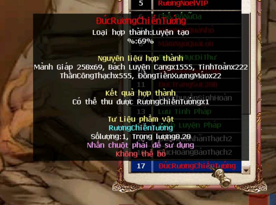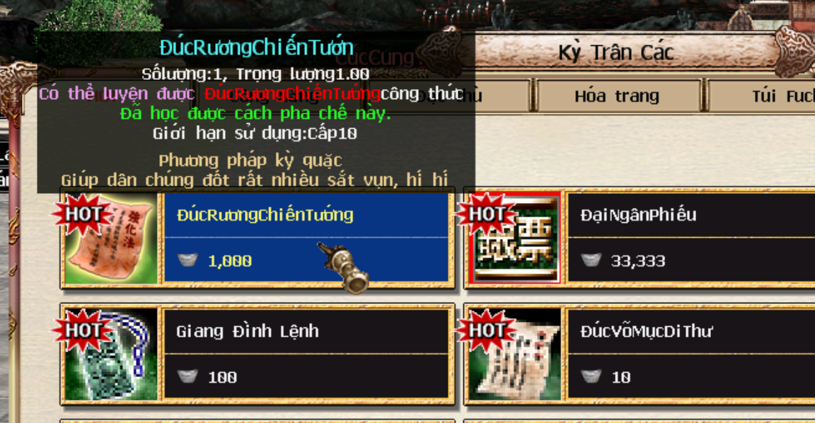 - Mua phương pháp chế tạo ở Kỳ Trân Các (Alt + U)
