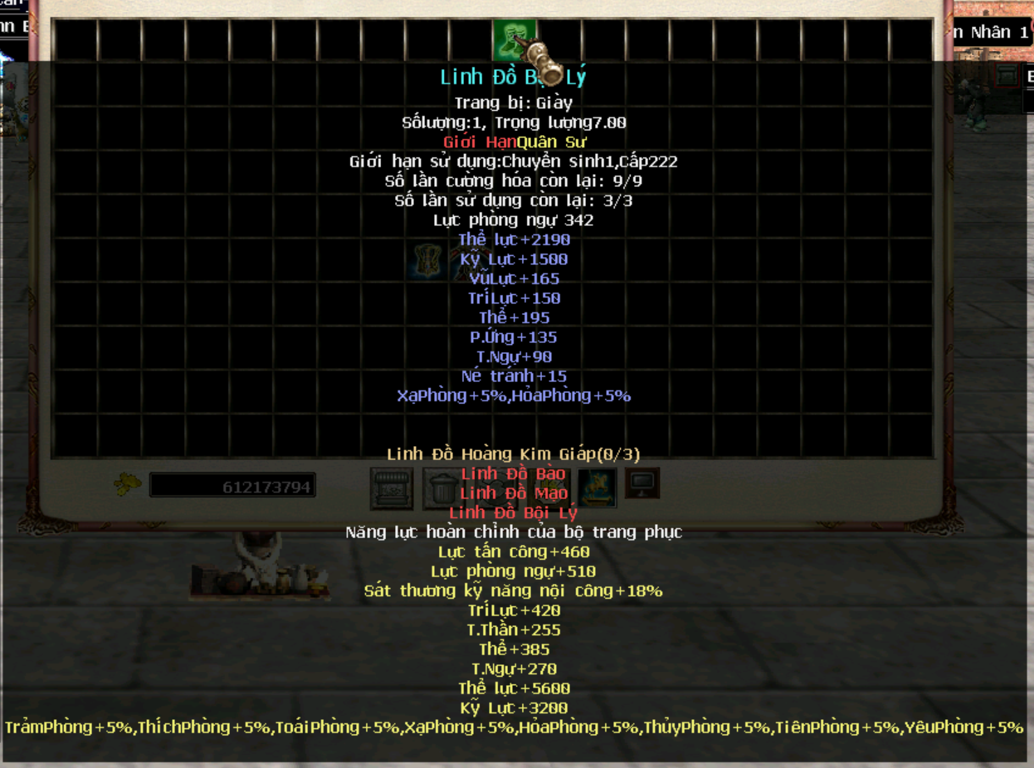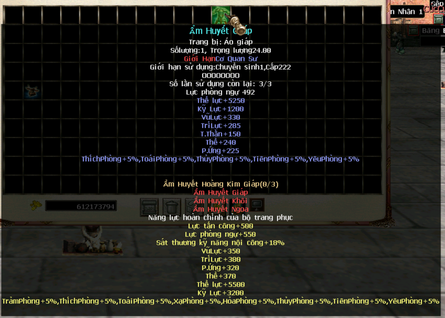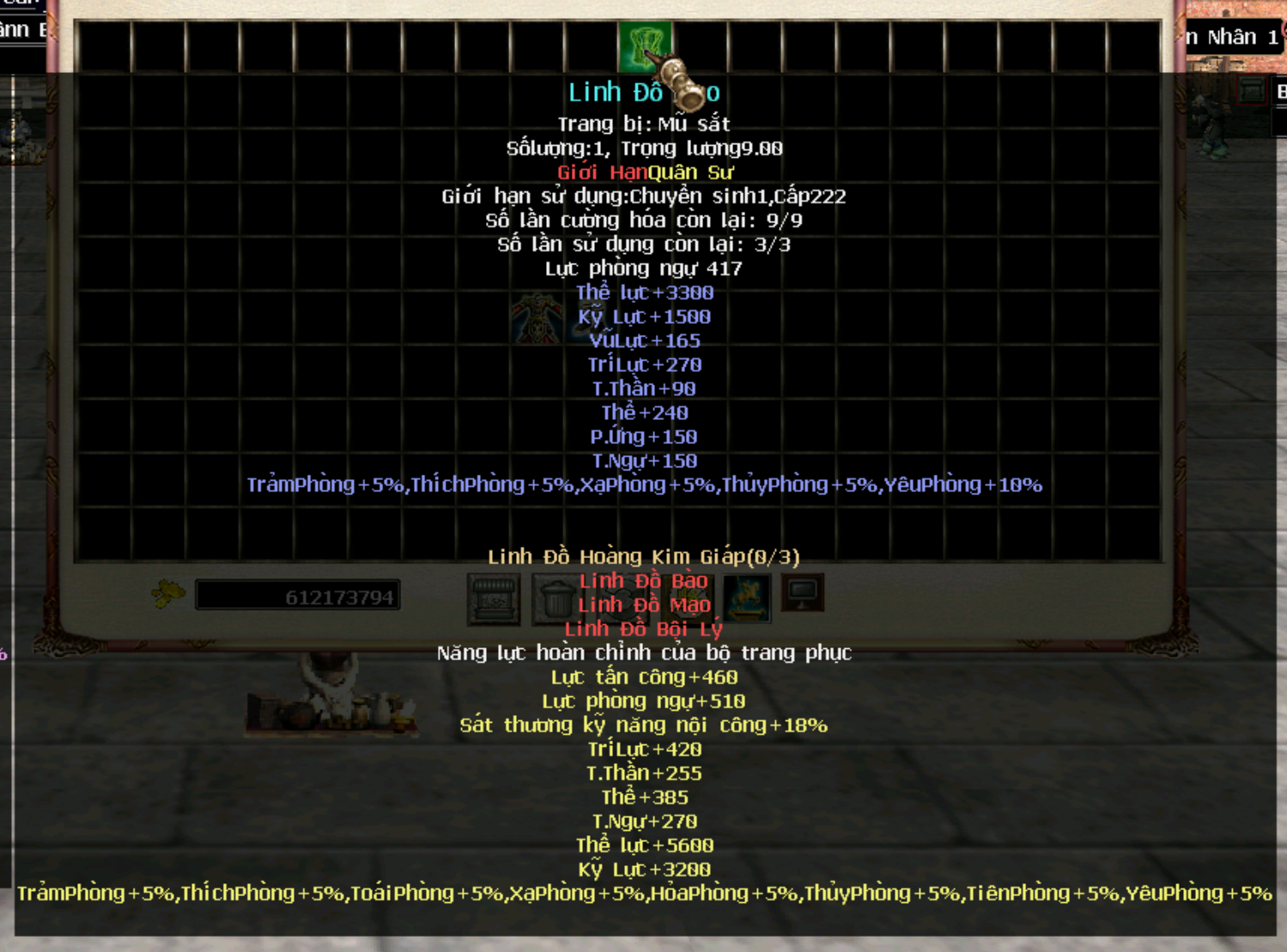 Trang bị Hoàng Kim Giáp cấp 250