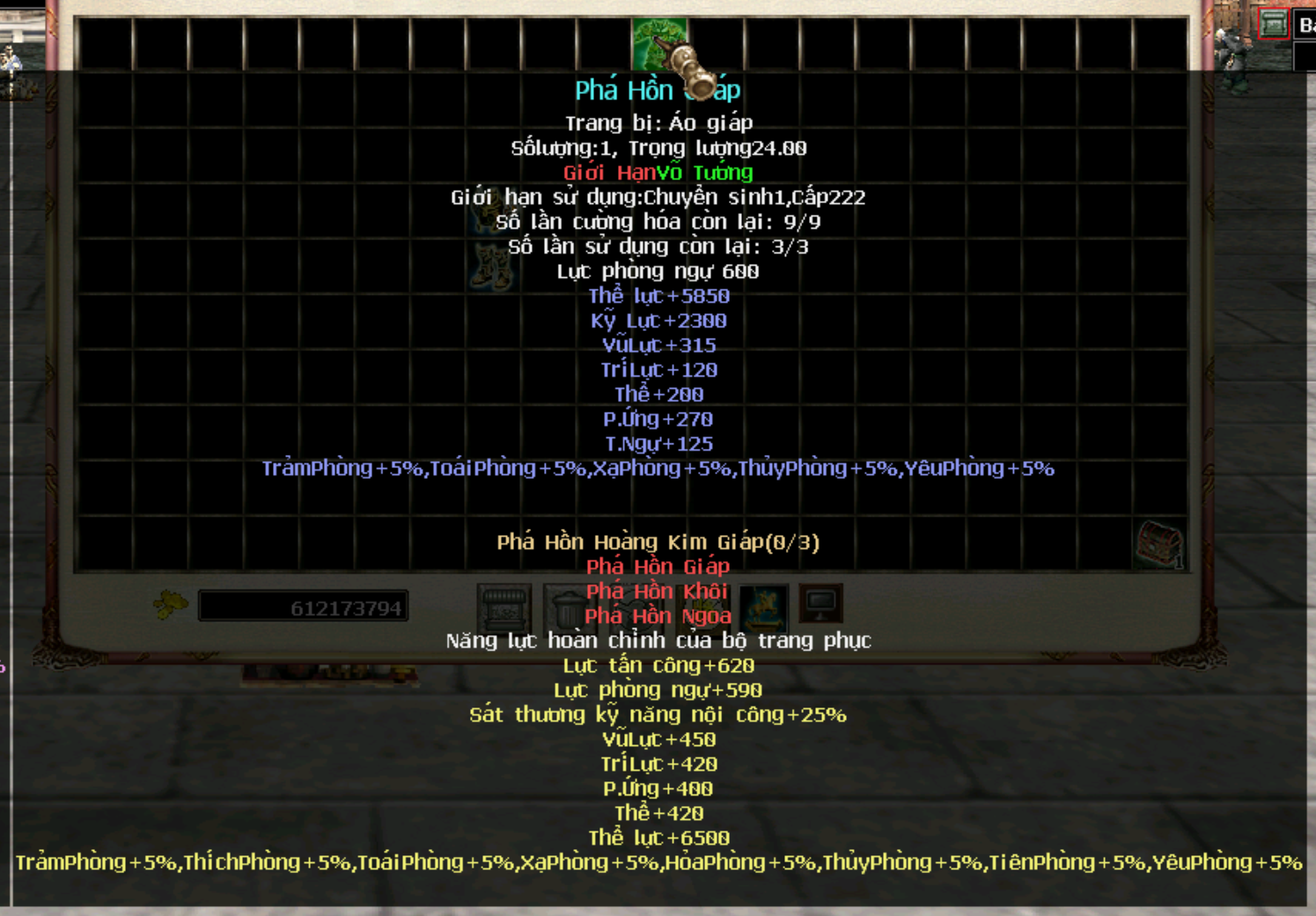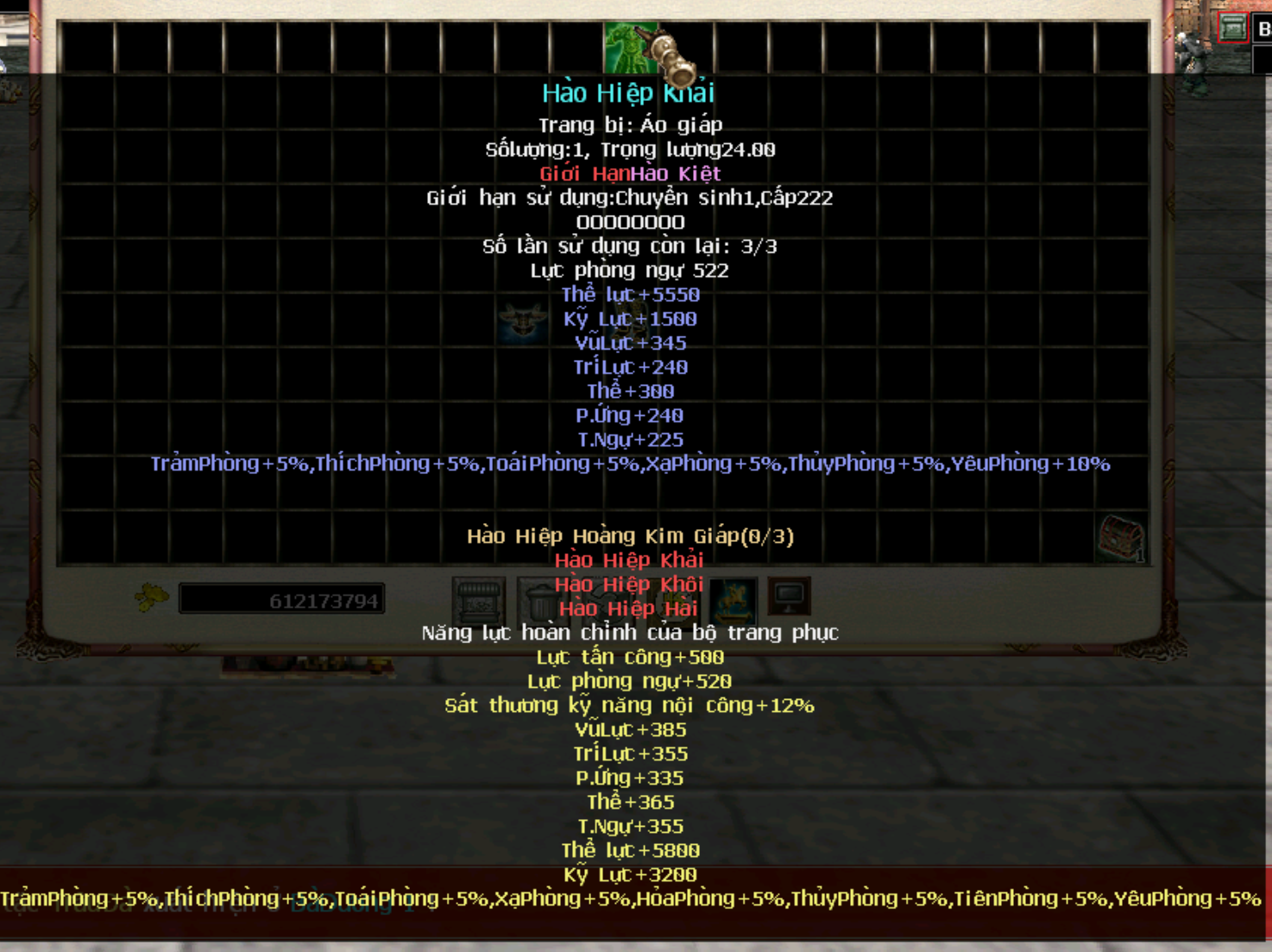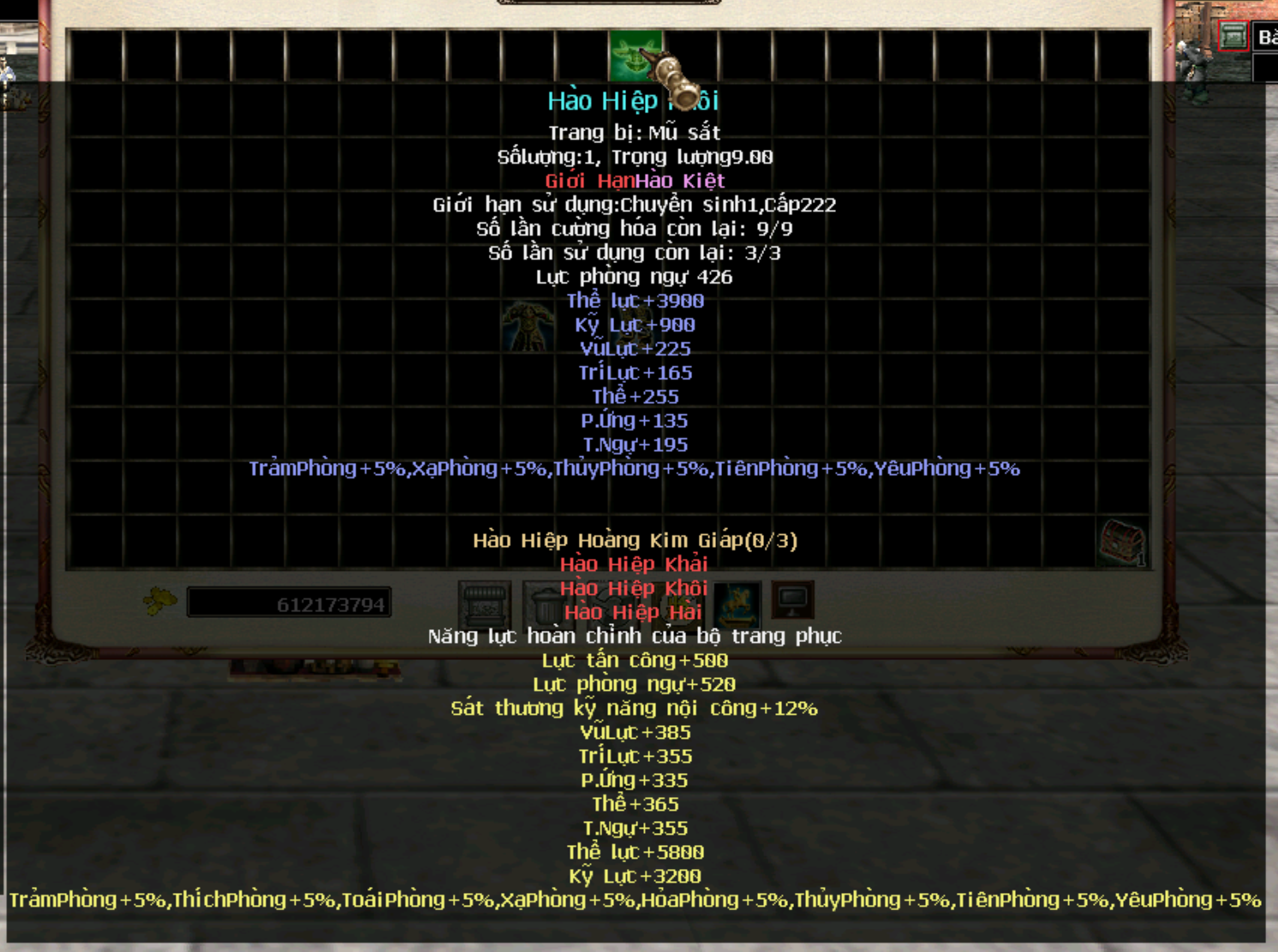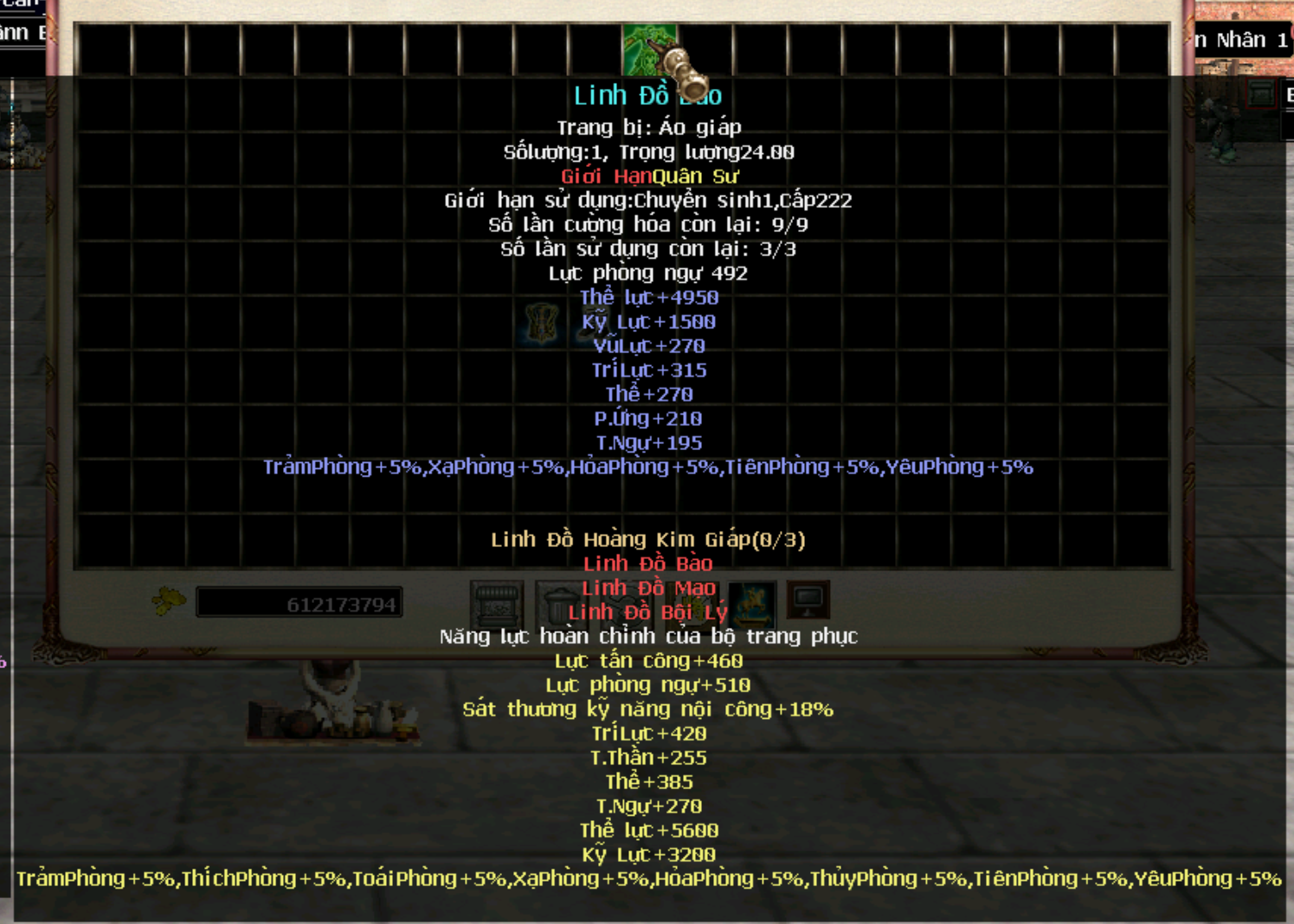 Trang bị Hoàng Kim Giáp cấp 250