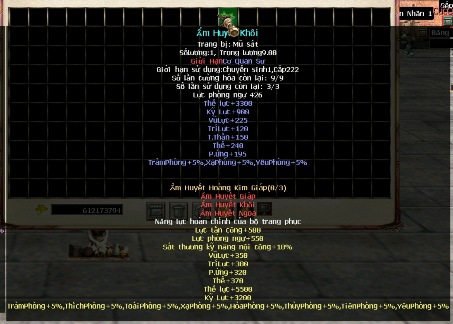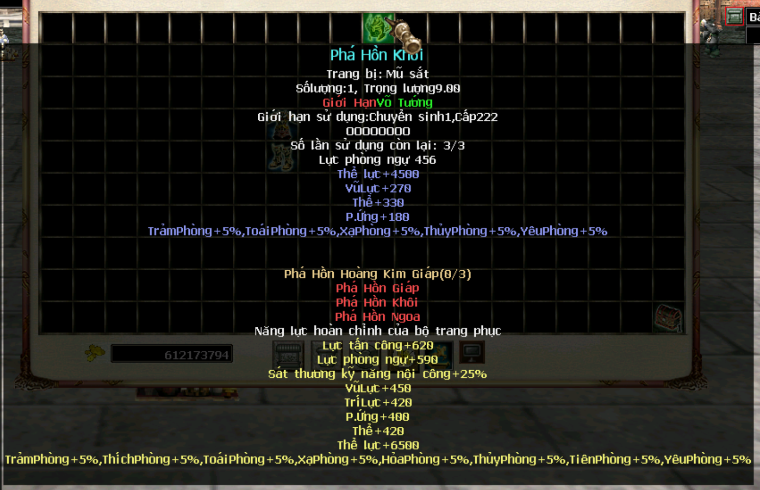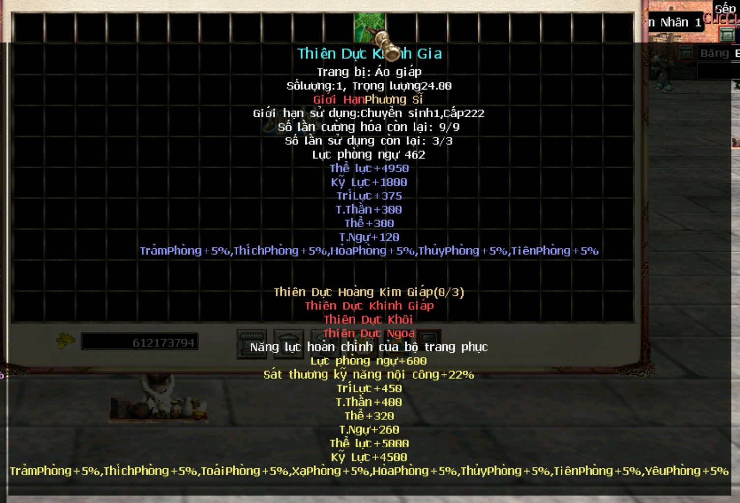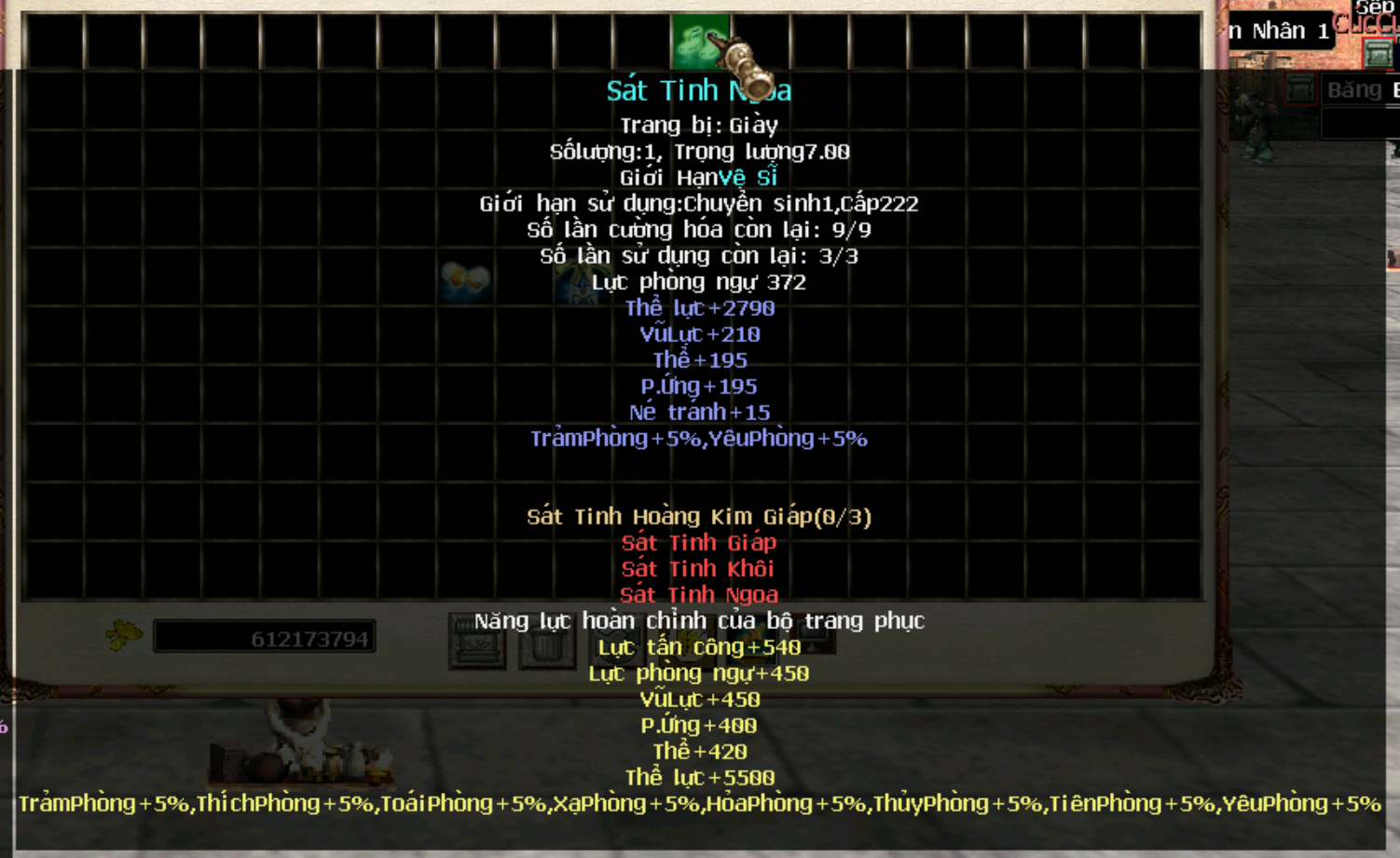 Hiện tại trang bị cần level 222, chuyển sinh 1 đã có thể sử dụng, tương lai sẽ level yêu cầu sẽ được đổi thành 250 để cường hoá cao sẽ + nhiều thể lực