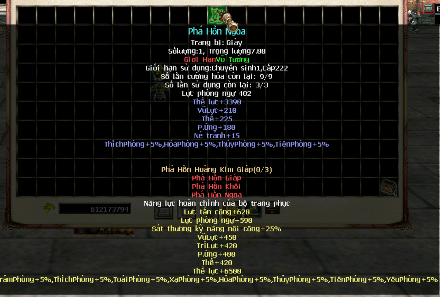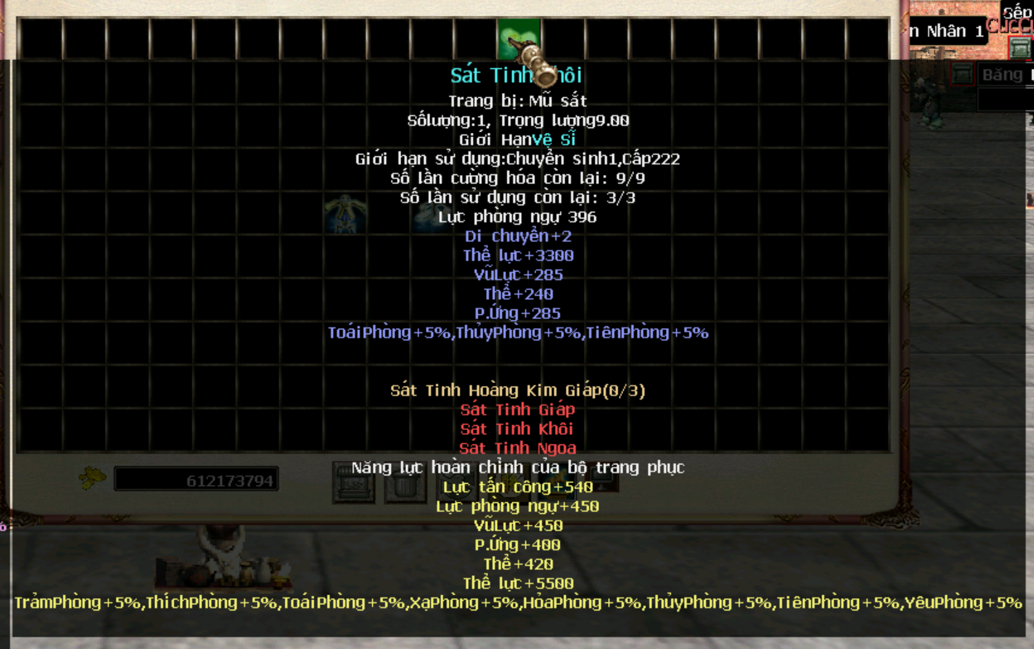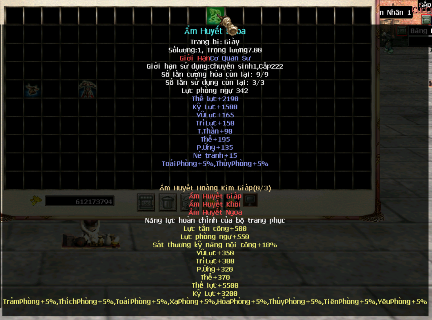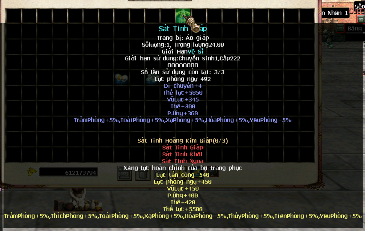 Hiện tại trang bị cần level 222, chuyển sinh 1 đã có thể sử dụng, tương lai sẽ level yêu cầu sẽ được đổi thành 250 để cường hoá cao sẽ + nhiều thể lực